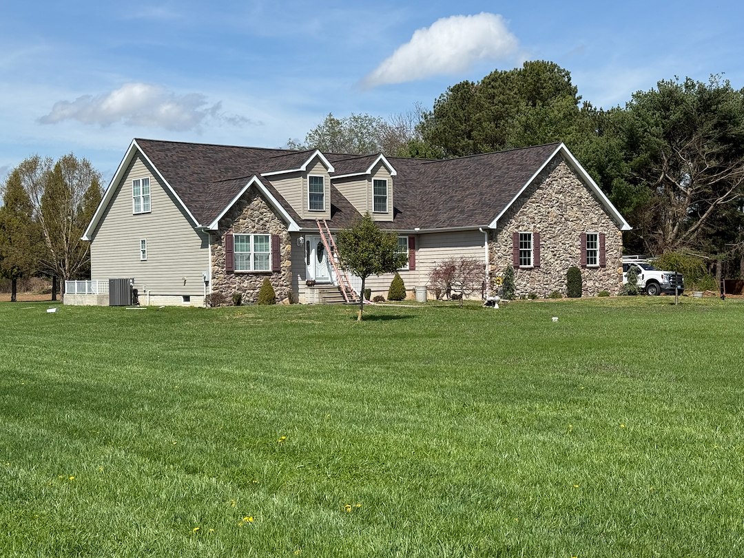Spring has sprung and your house deserves some attention. This Felton, Delaware homeowner chose a designer shingle color from the Owens Corning palette, and their roof replacement has restored their home’s appearance and functionality. Replacement of the storm-damaged fascia also helps to complement the beautiful new roof. Ask us for your no obligation property inspection today.